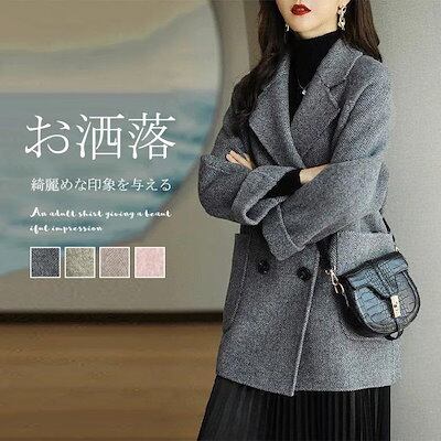 チェスターコート レディース コート アウター 冬 秋 フェイクウール 暖かい ウールコート ミディアム丈 柄 ゆったり ハーフコート グレー ダブルボタン テーラードジャケット 羽織り 防寒 保温3