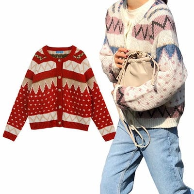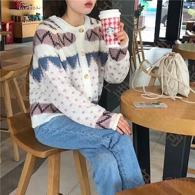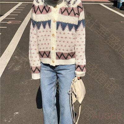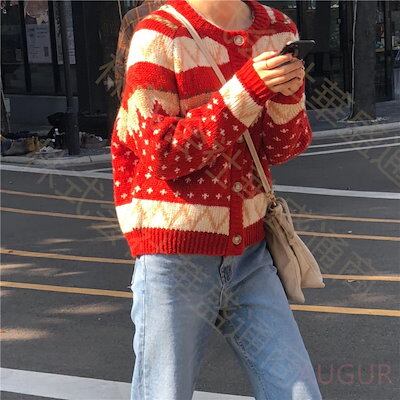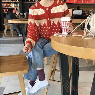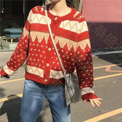 ニットカーディガン ニット クリスマス レディース 秋冬 ショート丈 クルーネック 前開き 羽織 丸首 長袖 ボタン ニットセーター セーター トップス アウター シンプル カジュアル ゆったり 体型
