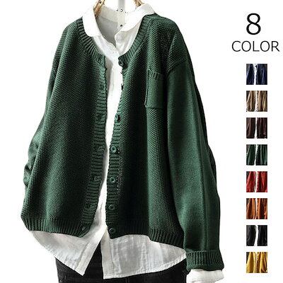 ニットカーディガン ニット レディース 秋冬 ショート丈 前開き 羽織 長袖 ボタン ニットセーター セーター トップス アウター シンプル カジュアル ゆったり 体型カバー 着せ お洒落 可愛い