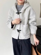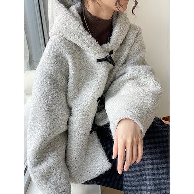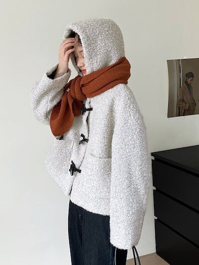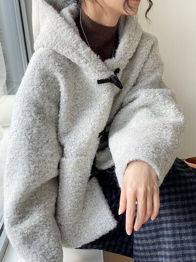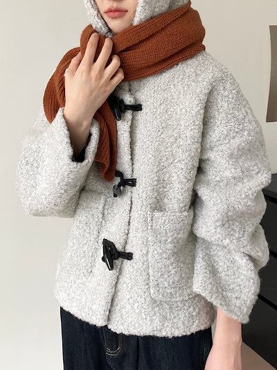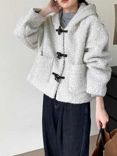 リトルスノーマン 60ウールホーンボタンウールフード付きジャケットレディース韓国レトロショートトップス2272