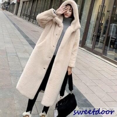 ファーコート レディース ロング丈 アウター エコファー レディース 服 ボタン 軽い 暖かい エコファーコート トップス