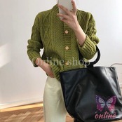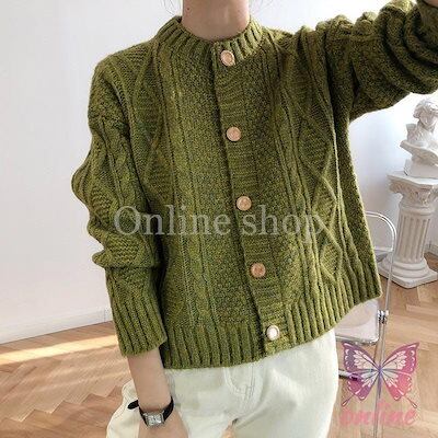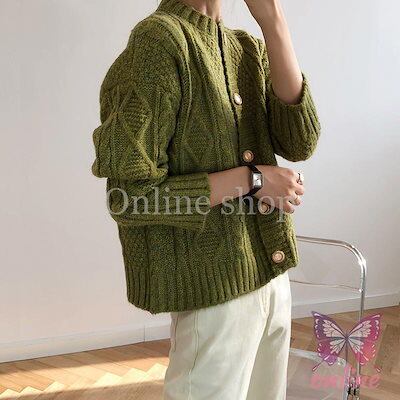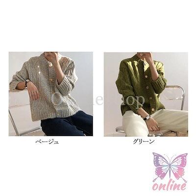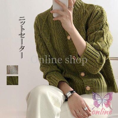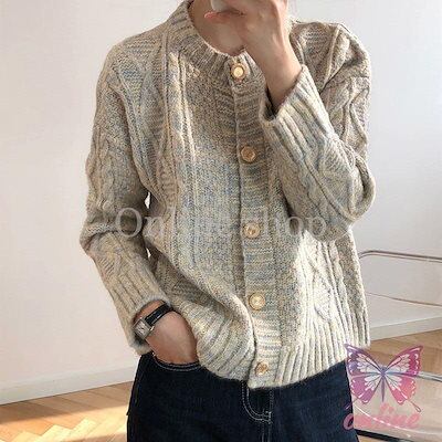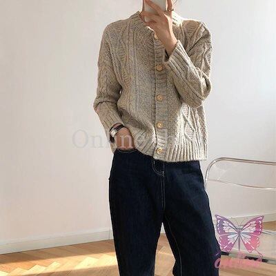 カーディガン レディース セーター トップス 無地 丸首 ストレート ショート丈 長袖 ドロップショルダー ボタン止め 通勤 50代 40代 30代
