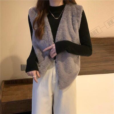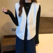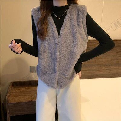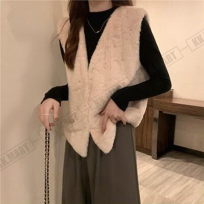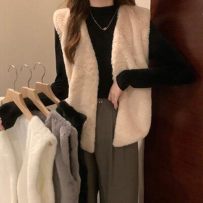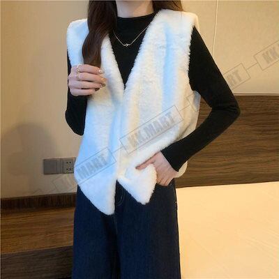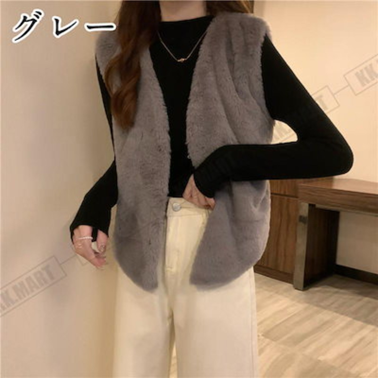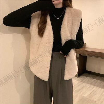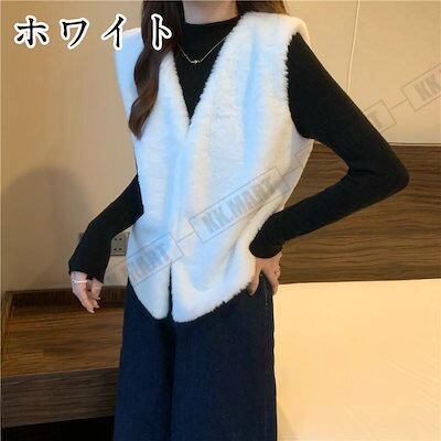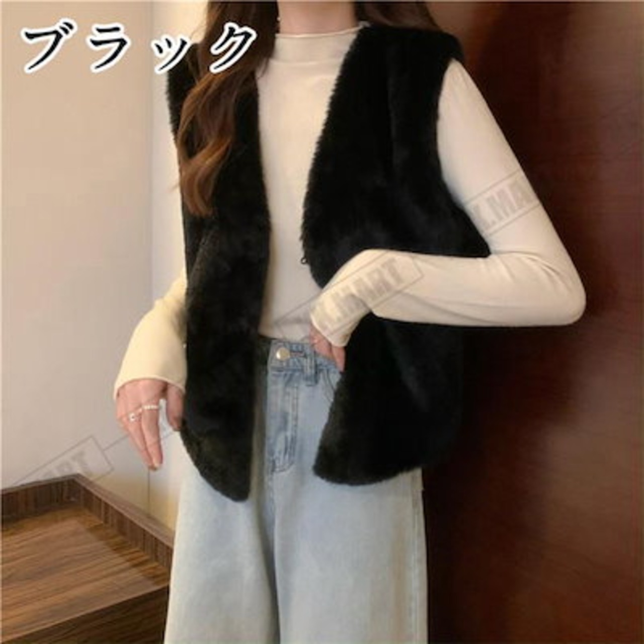 ファーベスト レディース ショート丈 アウター ジレ ベスト 羽織り 前開き ボタン カーディガン フェイクファー コーデ 袖なし ノーカラー