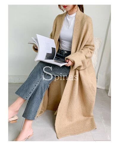 暖かく皴になりにくい アルパカ混紡 コーディガン ロング カーディガン アウター ゆったりサイズ レディース ボタン無し 女性用 オーバーサイズ 秋 冬 カジュアル ニット 厚手 全5色