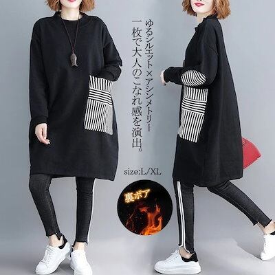 裏起毛 ワンピース レディース 冬 暖かい チュニックワンピース 50代 秋冬 防寒 保温 チュニック 長袖 トレーナー 裏ボア スウェット あったか 寒さ対策 チュニックワンピ 膝丈 大きいサイズ3