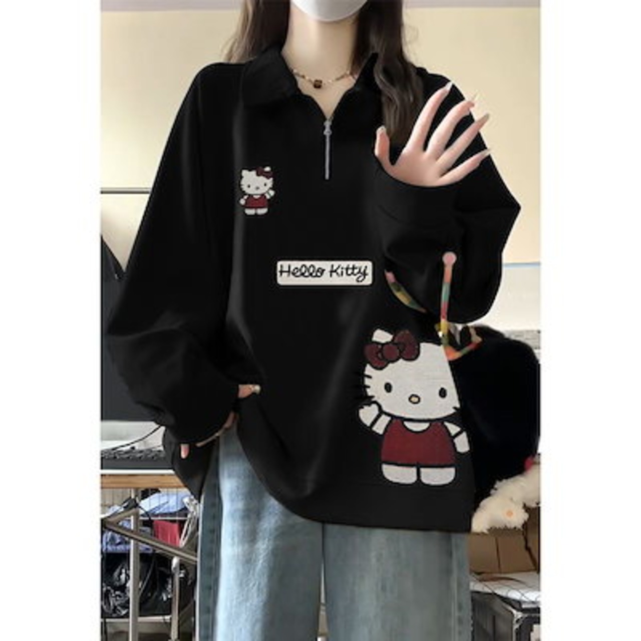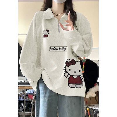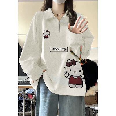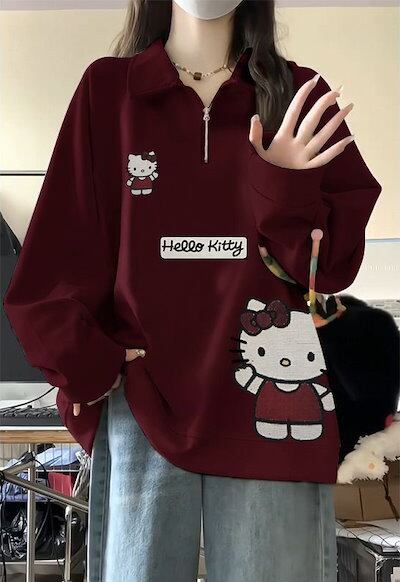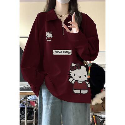 Hello Kitty ラウンドネック レディース アニメ 怠惰な風 パーカー ニッチ 高級 ワインレッド ゆったり 裏起毛 ジャージ