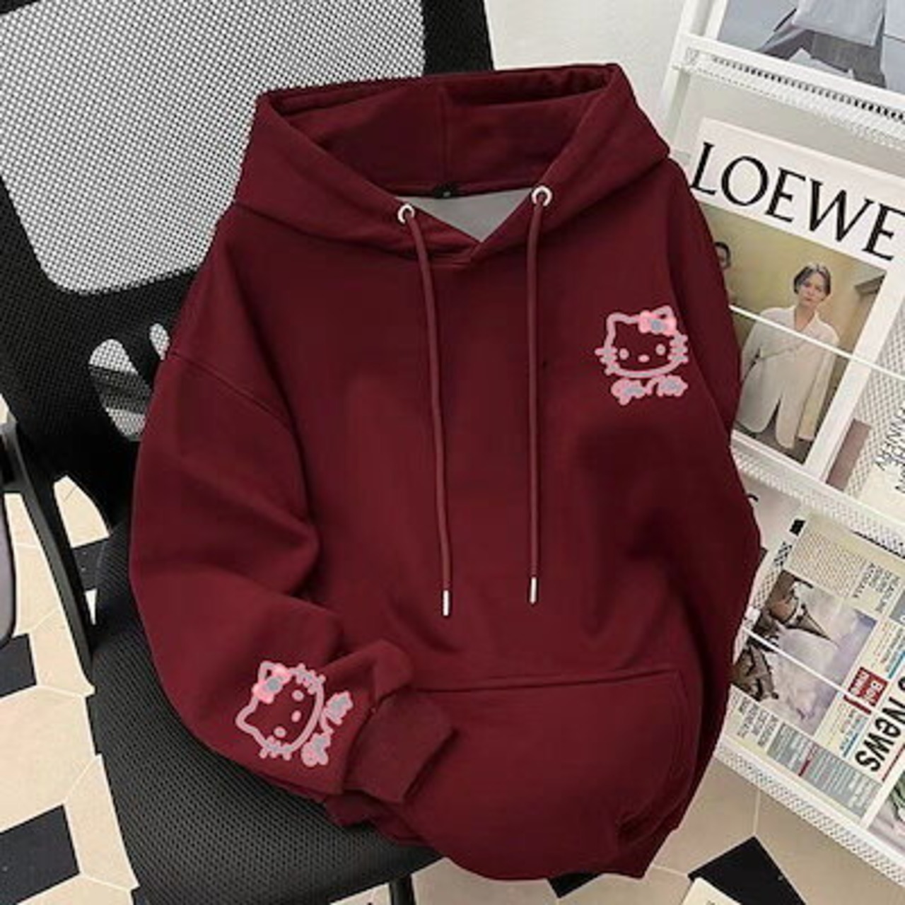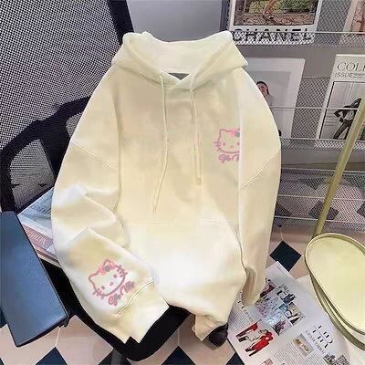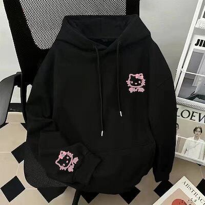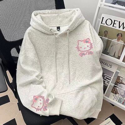 韓版 秋冬 Hello Kitty プリント ゆったり 着痩せ フード付きパーカー 裏起毛 厚手 ins レディース ジャージ