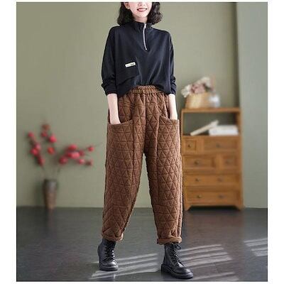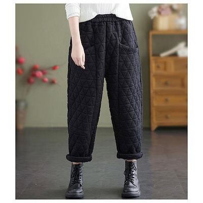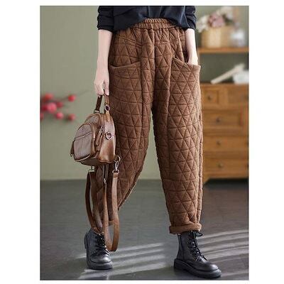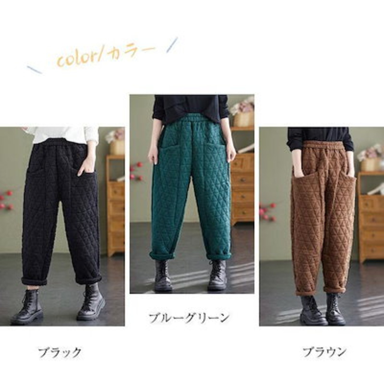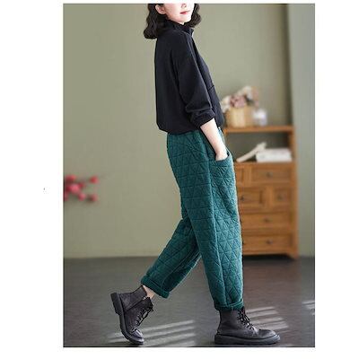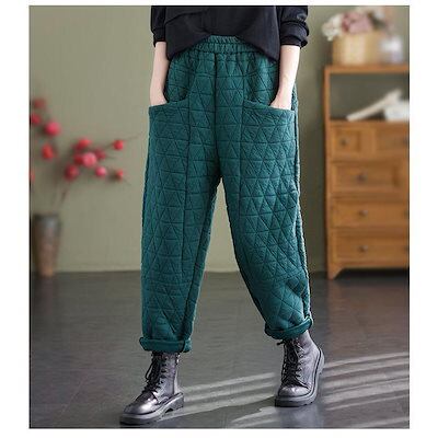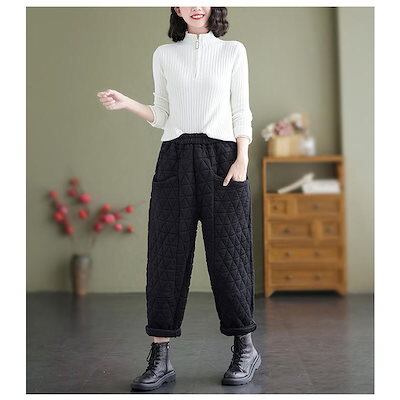 パンツ レディース 冬 中綿パンツキルティング パンツ テーパードパンツ 秋冬 ロングパンツ 中綿パンツ ロング丈 ウエストゴム 無地 キルティング