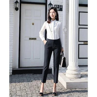 パンツレディーススラックステーパードパンツ脚細身面接就活スーツパンツ無地ストレートパンツ九分丈母の通勤春夏
