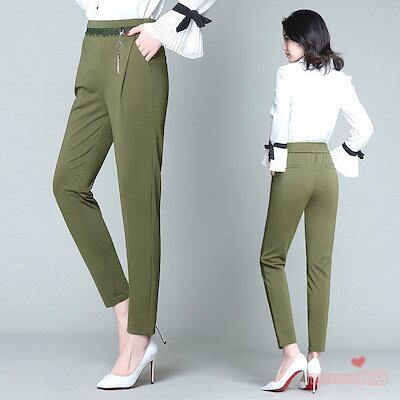 テーパードパンツ ロングパンツ レディース ハイウエスト パンツ ウエストゴム 通勤 オフィス フォ