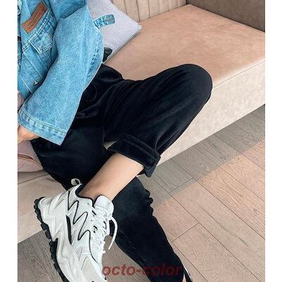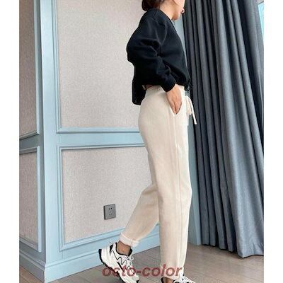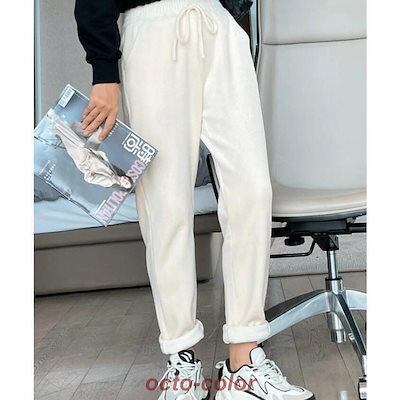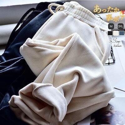 コーデュロイ テーパードパンツ ロングパンツ レディース 裏起毛 防寒 厚手 無地 ポケット付き 紐付き カジュアル 秋 冬 テーパードパンツ