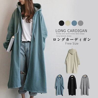 ロングカーディガン カーディガン 羽織 ロングアウター 裏起毛アウター レディース ロングコート トップス 前開き パーカー 大きいサイズ 裏起毛 シンプル コート カジュアル 体型カバー