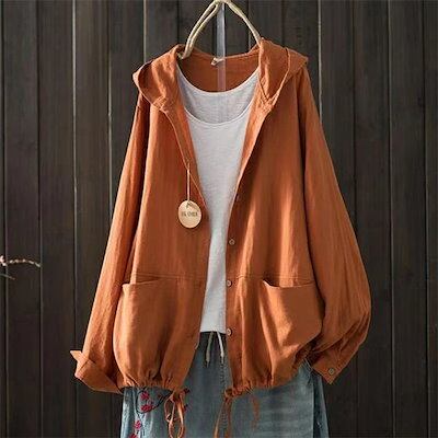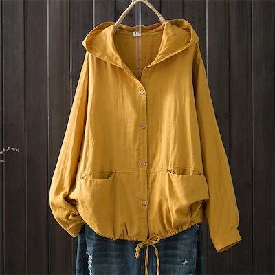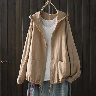 パーカー レディース ガーゼ アウター パーカー 夏 長袖 パーカー 秋 カーディガン フード付き 無地 綿混 ボタンパーカー 前開き 大きいサイズ ゆったり 体型カバー 着回し エスニック カジュア