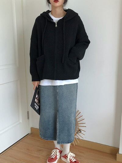 秋 パーカー レディース トレーナー スポーツウェア 大きいサイズ 安い INS-超人気パーカーニットセーター春と秋のデザイン感長袖肩出し衛衣レディースファッション新型ニットセジャージ-パーカー