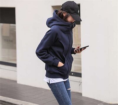 パーカー スウェット トレーナー フーディー レディース 無地 防寒 トップス スウェットパーカー アウター ジップアップ 長袖 厚手 秋 冬 裏起毛 暖か 羽織り ファスナー 前開き フード付き ゆ
