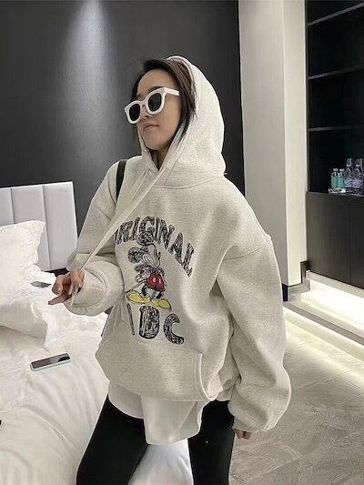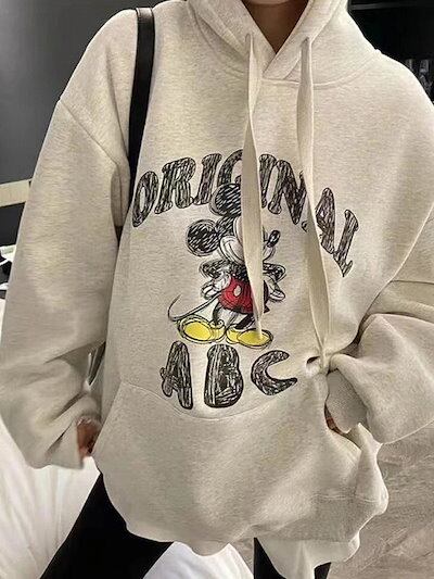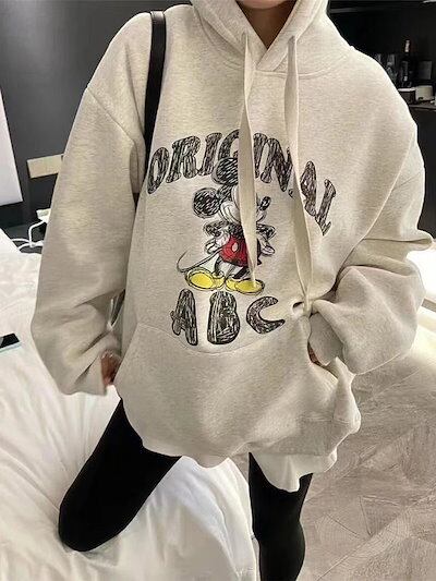 【2024新品入荷激安本日限定】大きいバージョンプラスベルベットミッキーレディース冬ルーズカジュアルパーカー韓国フード付きスウェットシャツ