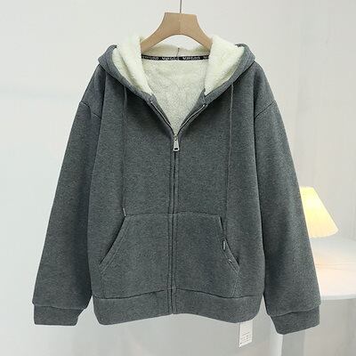 レディース 大きいサイズ 体型カバー パーカーボアパーカーレディースミドル丈裏起毛厚手フード付きファスナーボアコートアウター防寒
