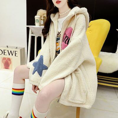 韓国ファッション レディース 大きいサイズ 体型カバー厚手冬アウター ジャケットクリスマス裏起毛ジャケットジャケットプス フード付き パ一カ一 長袖フード付きスウェット