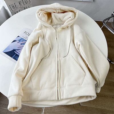 前開き 部屋着 フード アイボリー 通勤 通学 ゆったり ボアパーカー 春先 オーバー 秋冬 ボア 裏ボア パーカー ジャケット 裏起毛 アウター ボアフリース ママコーデ レディース 長袖 可愛い
