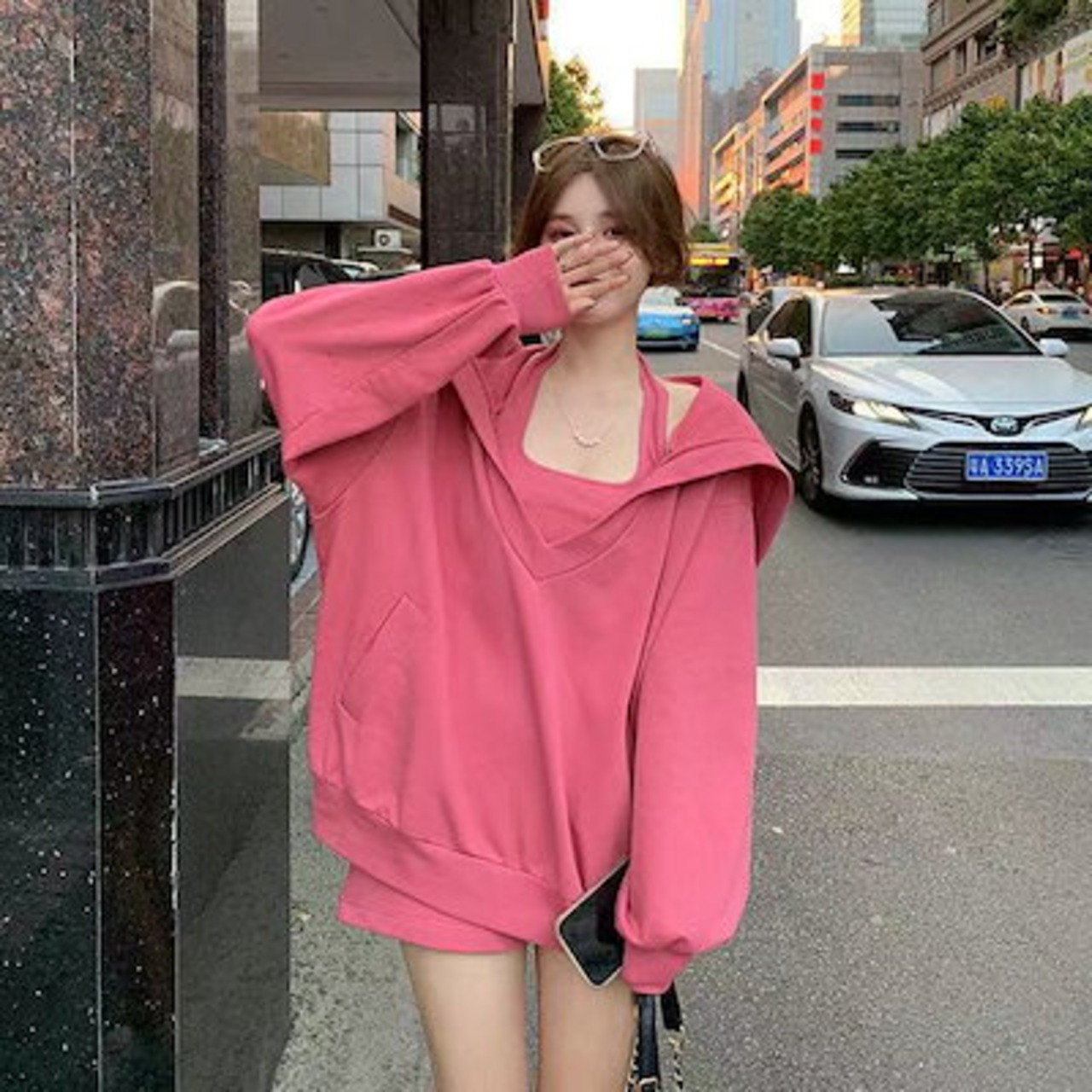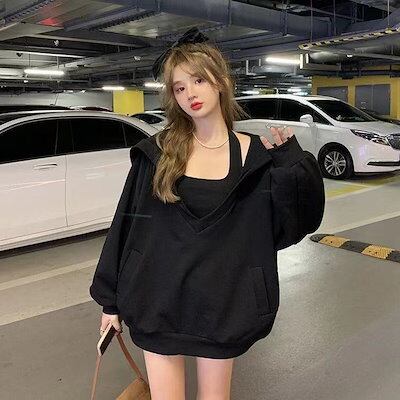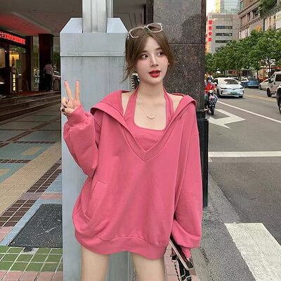 トレーナー 秋 人気パーカー レディース 2023 韓国ファッションネックオフショルダーフード付きスウェットセット