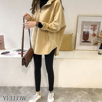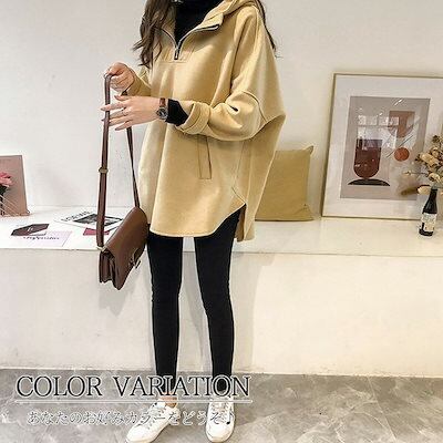 ハーフジップ ロングパーカー スウェット ハーフジップトレーナー フード付きパーカー オーバーサイズ プルオーバー パーカー レディース スウェットパーカー スウェットトレーナー フードパー
