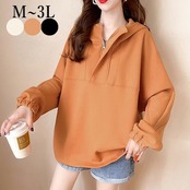 パーカー レディース スウエット トレーナー ボリューム袖 フード付き ミディアム ロング ビッグシルエット 長袖 ゆったり カジュアル 着痩せ 春秋冬 M L 2L 3L