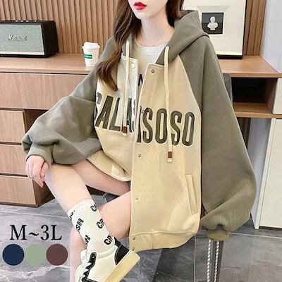トップス パーカー 長袖 スウェット パーカーコート レディース アウター ロゴ 英文字 ゆったり オーバーサイズ オシャレ ジップアップ M L 2L 3L