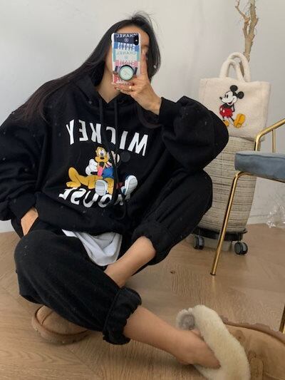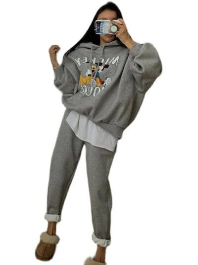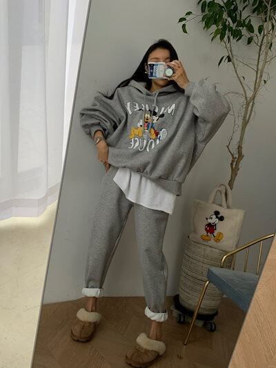 新しい 【2024新品入荷激安本日限定】ミッキープリントトレーナーレディースフード付きベルベットルーズトップカジュアルレギンスワイドレッグパンツスーツフード付きトレーナー