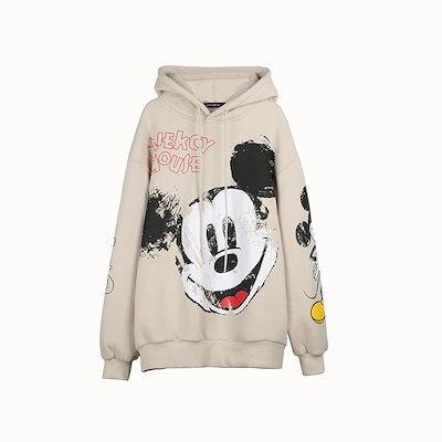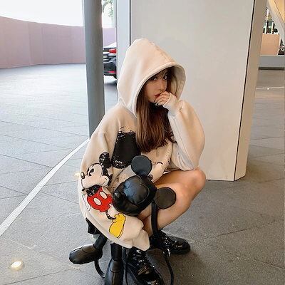 新しい 【2024新品入荷激安本日限定】山東省青島jimoミッキースウェットシャツレディースミッドレングスお尻カバープラスベルベット厚みのある超厚手のフード付きスウェットシャツ