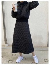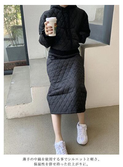 最短出荷 キルティング セットアップ レディース キルティング パーカー スカート 2点セット 中綿 キルト プルオーバー フード付き 秋 冬 服 中綿パーカー 中綿スカート 大人可愛い カジュアル