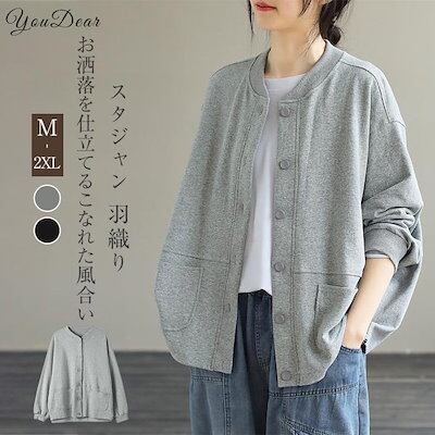 スタジャン パーカー レディース スウェット カーディガン トレーナー カジュアル ジャケット 春 秋 コート 羽織り コート 大きいサイズ アウター