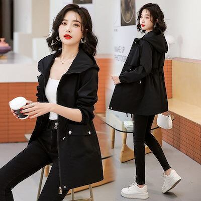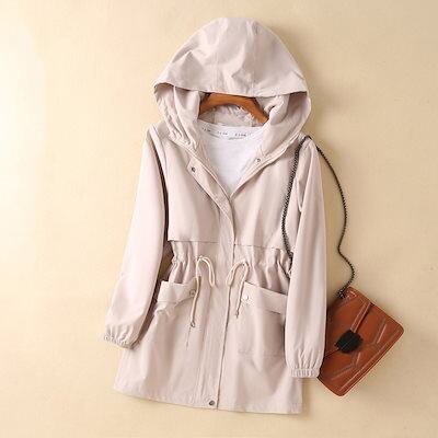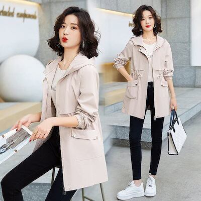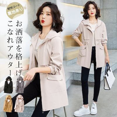 マウンテンパーカー レディース トレンチコート 春秋アウター ブルゾン フード付き 羽織り ジャケット 裏地あり ミディアム丈 ライトコート