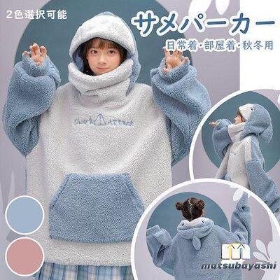 パーカー サメ もこもこ レディース 冬 メンズ ルームウェア ハロウィン 部屋着 ボア コート アウター プルオーバー トップス かわいい フード ポケット付き ト