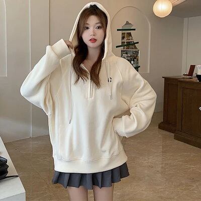 アメリカンハーフファスナーフー今週の割引は 25% オフですドパーカーレディース秋冬コーデゆったり着やせデザイントップス パーカー メガ割