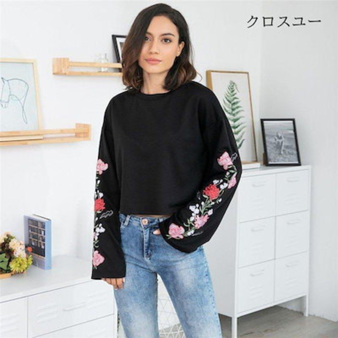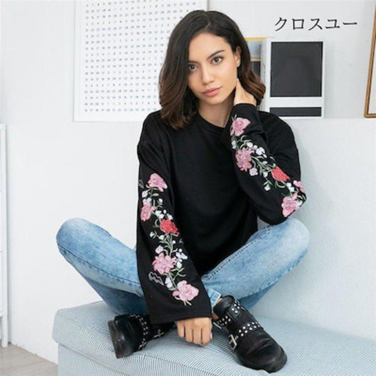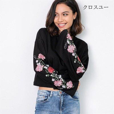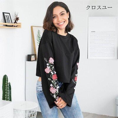 パーカー 大きいサイズ レディース パーカ トップス 秋冬 アウター 長袖パーカー クルーネック スウェット プルオーバー 花柄 刺繍パーカ トレーナーマウンテンパーカー