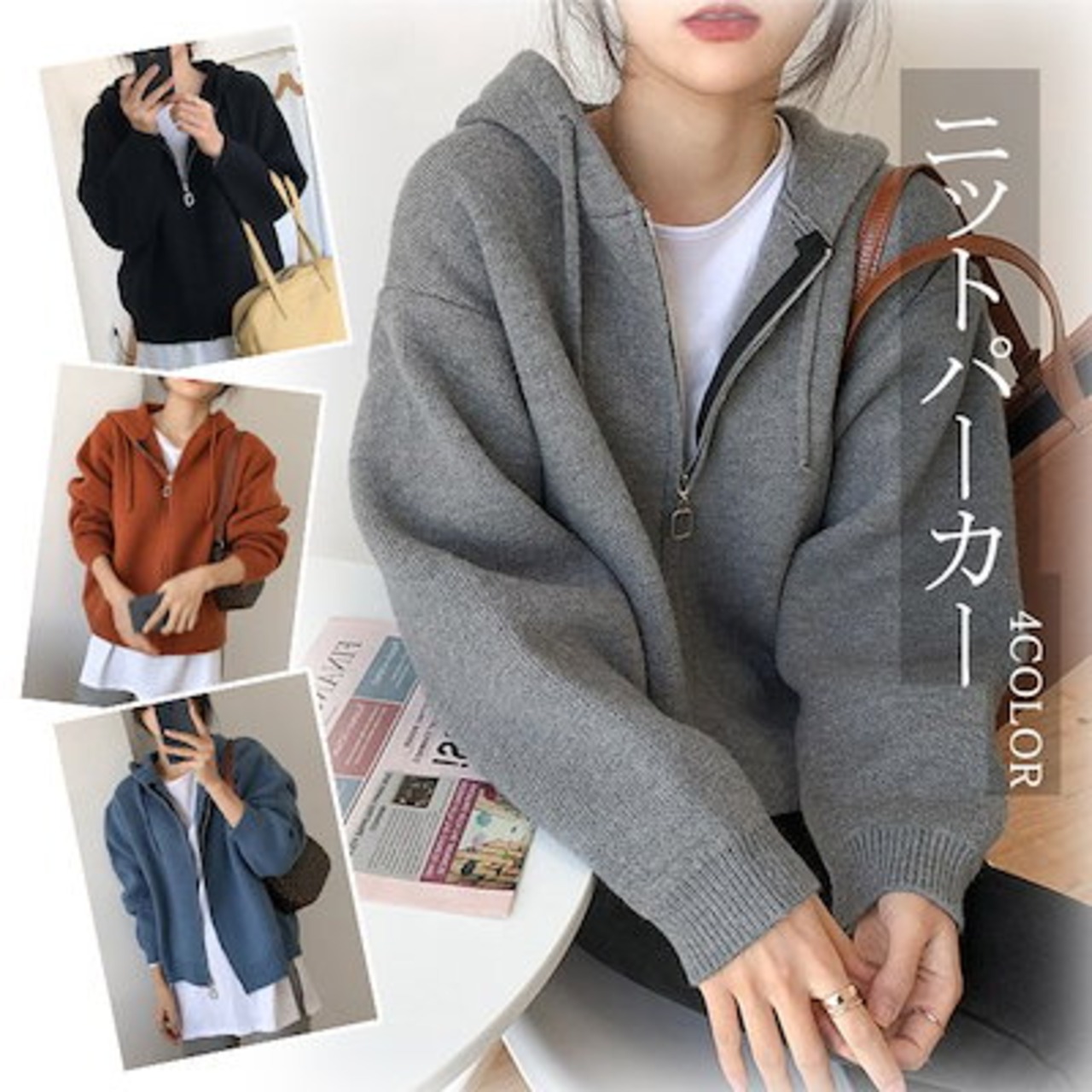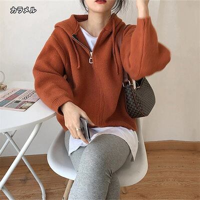 ニット レディース ニットパーカー セーター トップス パーカー カーディガン アウター 羽織り 長袖 お洒落 フード付きパーカー
