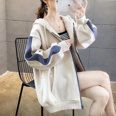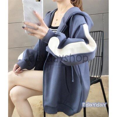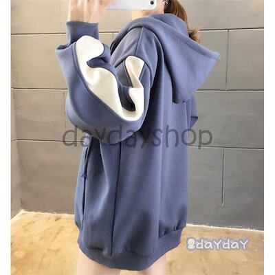 パーカー レディース トレーナー 秋服 トップス スウェット ゆったり ゆる チュニック 体型カバー 前開 カジュアル
