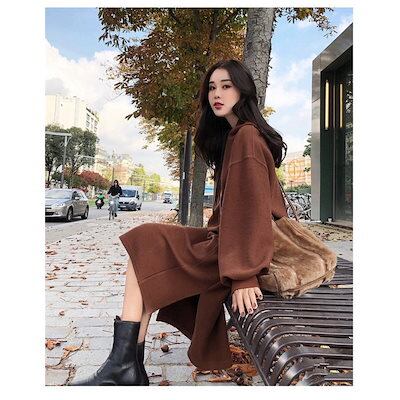 ロングパーカー パーカー フード付き 裏起毛 スウェット レディース コート 長袖 体型カバー 部屋着 アウター ゆったり 無地 大きいサイズ
