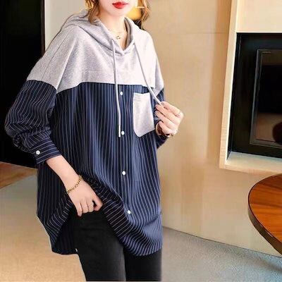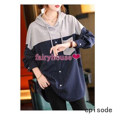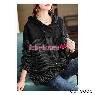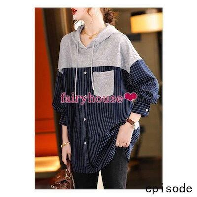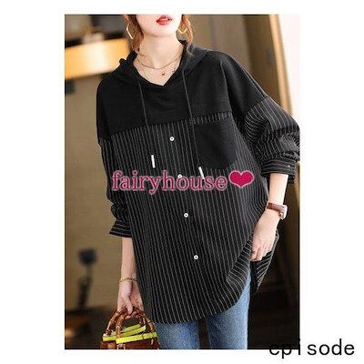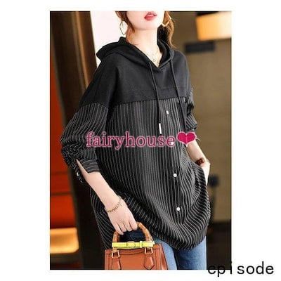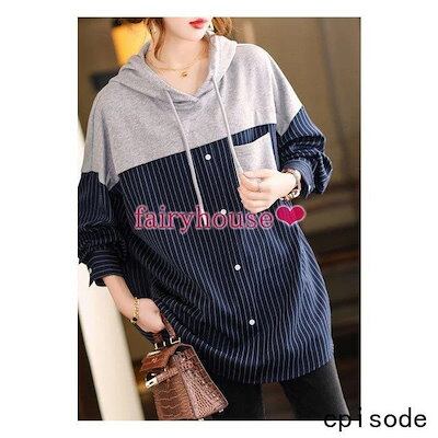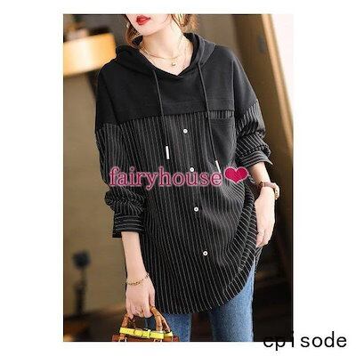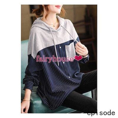 スウェットパーカー トップス レディース 40代 秋長袖プルオーバー パーカー フード付き 配色 ストライプ柄 ジャージ 韓国風 ゆったりTシャツ カジュアル30代