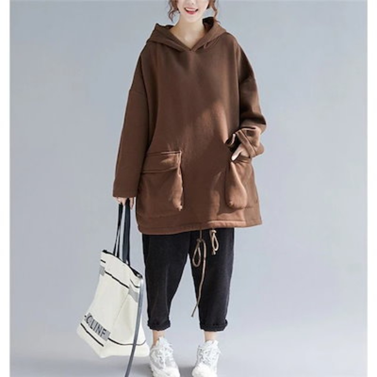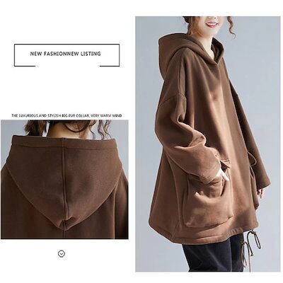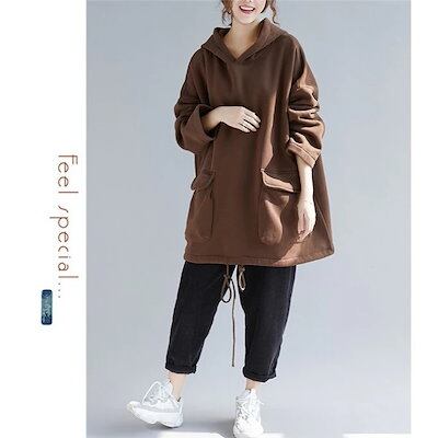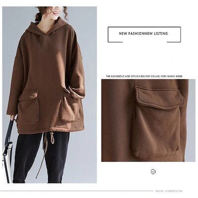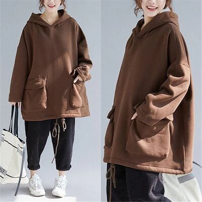 ロングパーカー パーカー フード付き 裏起毛 ポケット付き オーバー レディース サイドスリット 体型カバー アウター ゆったり 大きいサイズ