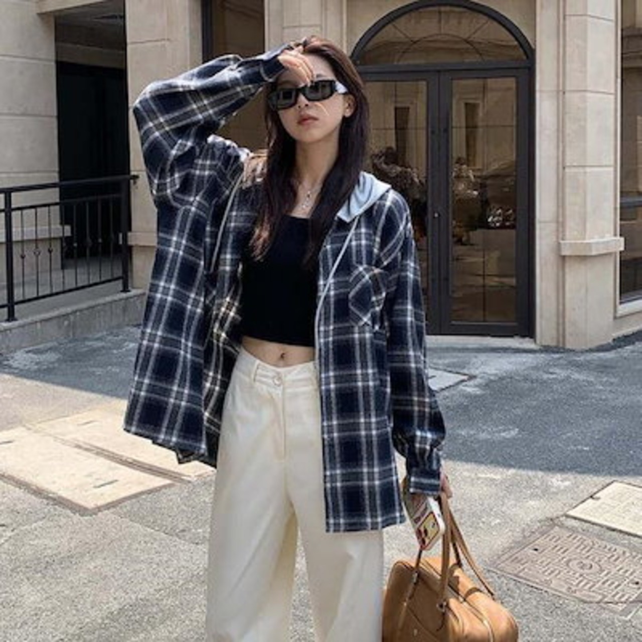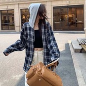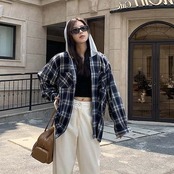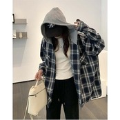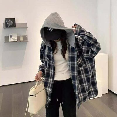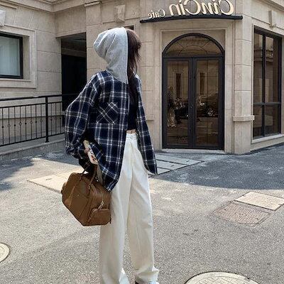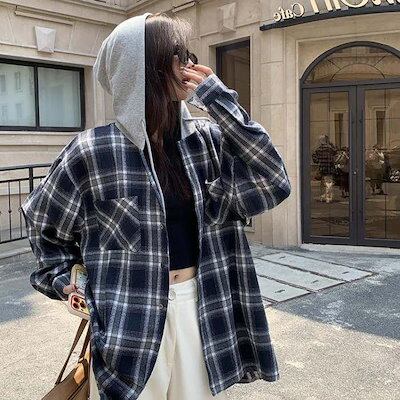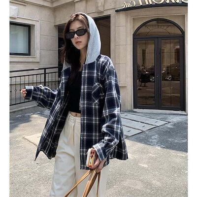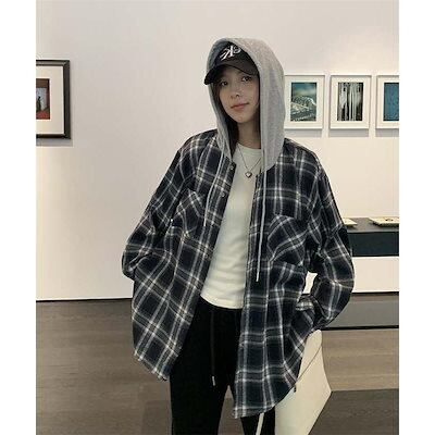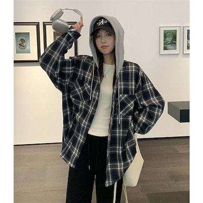 パーカー アウター レディース トップス 大きいサイズ 長袖 チェック柄 フード付き パーカー ジャケット 秋 冬 配色 羽織り 前開き スウェット シャツジャケット