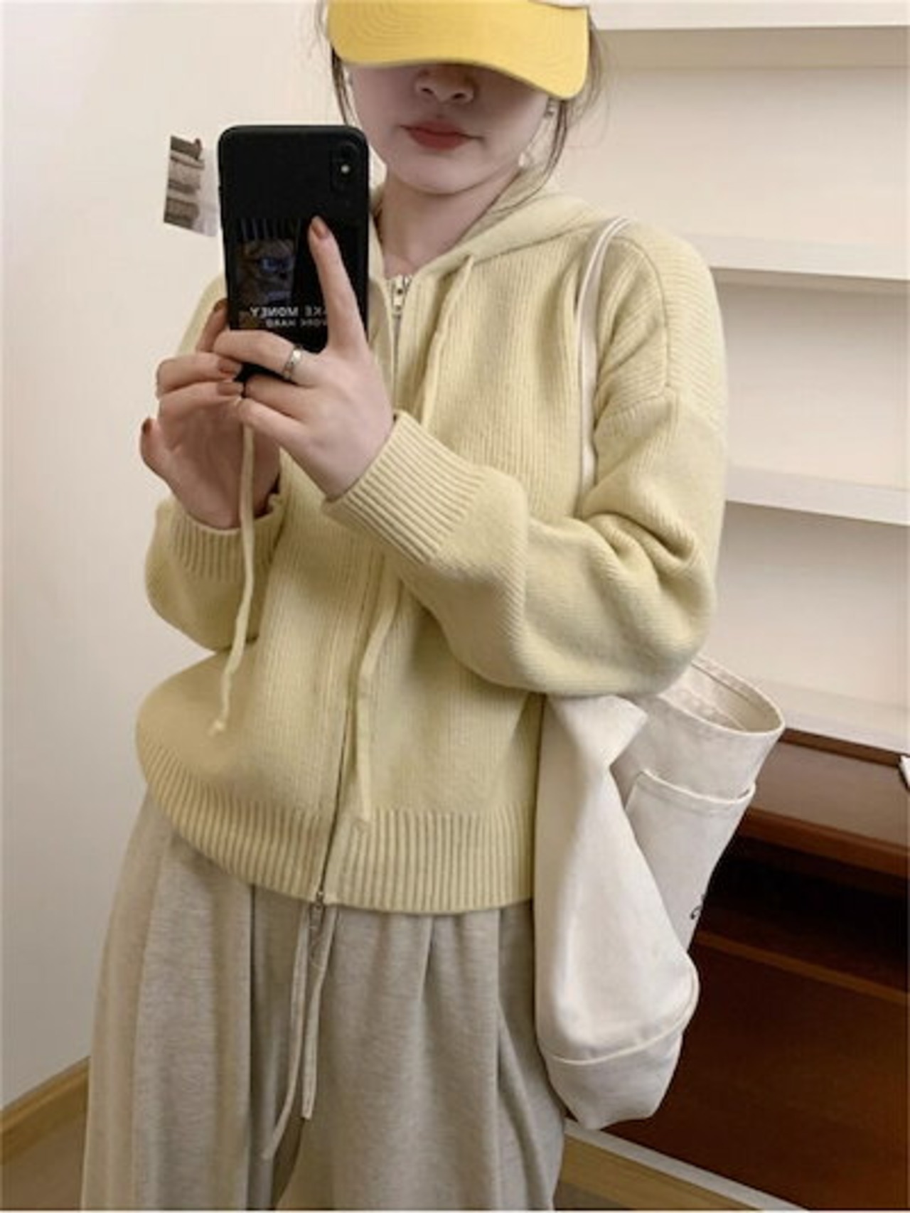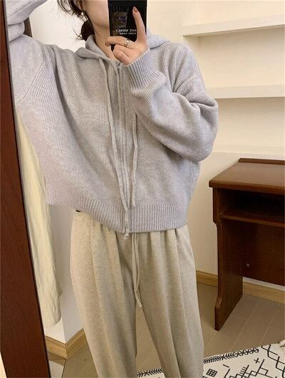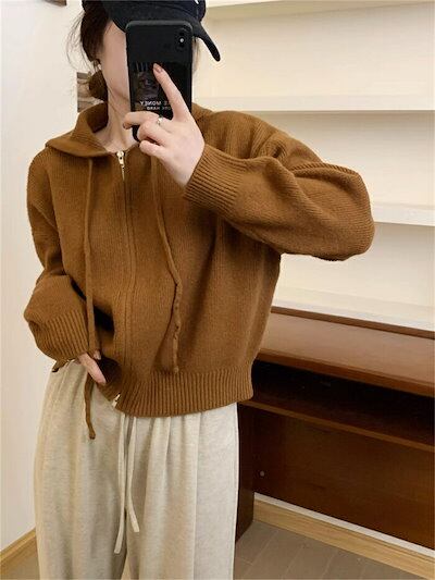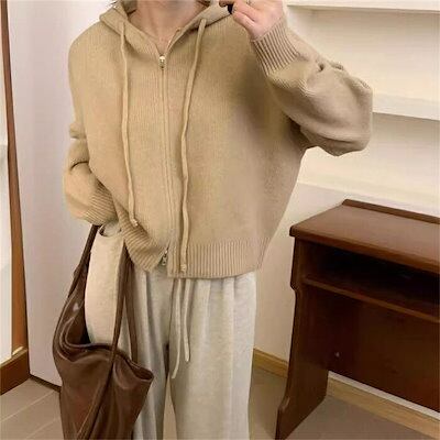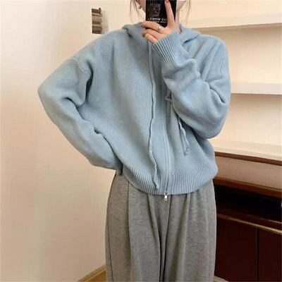 ニットパーカー ニットセーター レディース 秋 冬 ニット 長袖 洗えるニット フード付き トップス 前開き ダブルジップ 無地 お洒落 シンプル 体型カバー 上品 大人 ママコーデ 通勤 OL 20