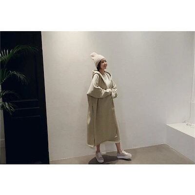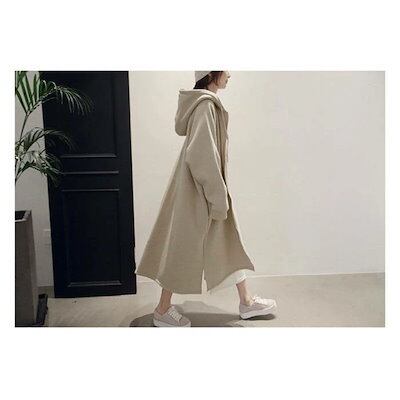 ロングパーカー レディース スウェットワンピース ロングコート 秋冬 ジャージ おしゃれ パーカー 長袖スウェット 裏起毛 フード付き ロング丈 BF風 韓国風 スポーツカジュアル スウェット コート