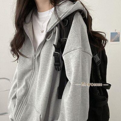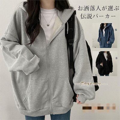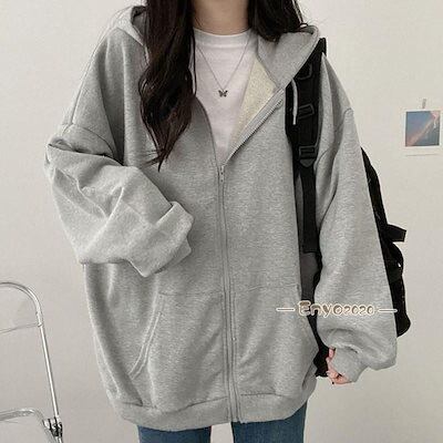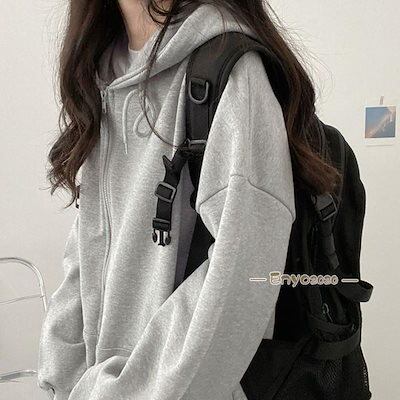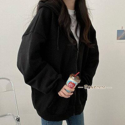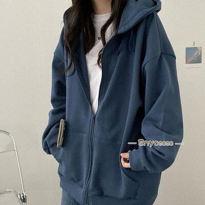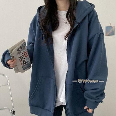 パーカー レディース 開襟パーカー 前開き 高級感 魅せる ギフト 韓国風 綿 アウター トップス 長袖 オールシーズン ジップアップ