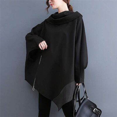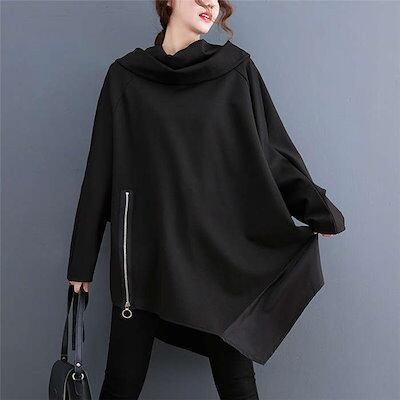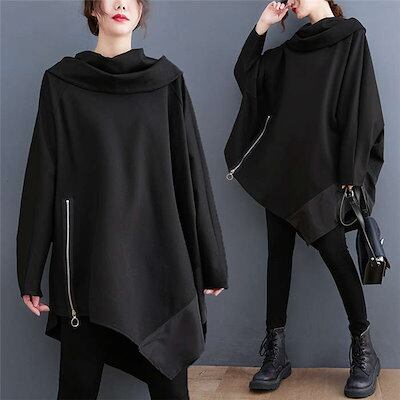 アシンメトリー パーカー レディース 秋冬 パーカーワンピース チュニック 大きめ ロングパーカー トレーナー ビッグパーカー スウェット アシンメトリーパーカ ゆったり ドルマンスリーブ 無地 韓国
