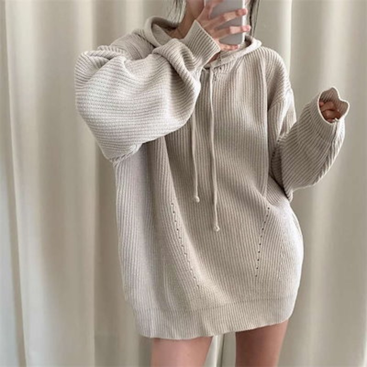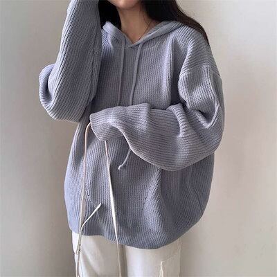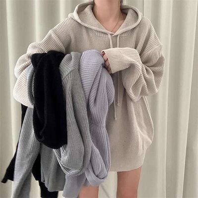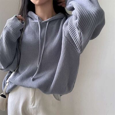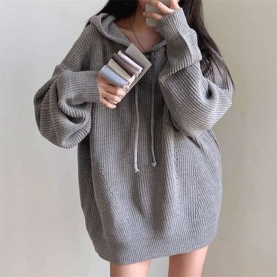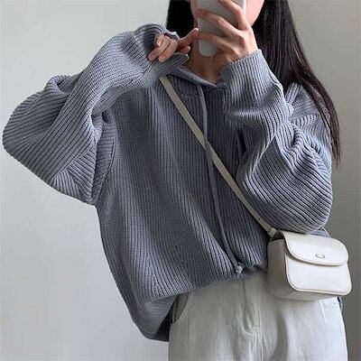 ニットパーカー ニットセーター レディース 秋 冬 ニット 長袖 洗えるニット フード付き トップス 無地 お洒落 シンプル 体型カバー 上品 フードパーカー フーディー レディース トップス シンプ