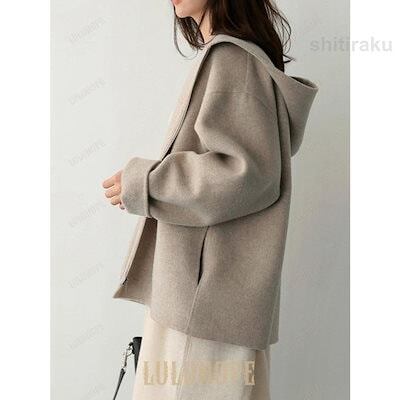 パーカー レディース ラシャコート ショートコート コート チェスターコート ジャケット フード付き カーディガン アウター 無地 長袖 大きいサイズ 通勤