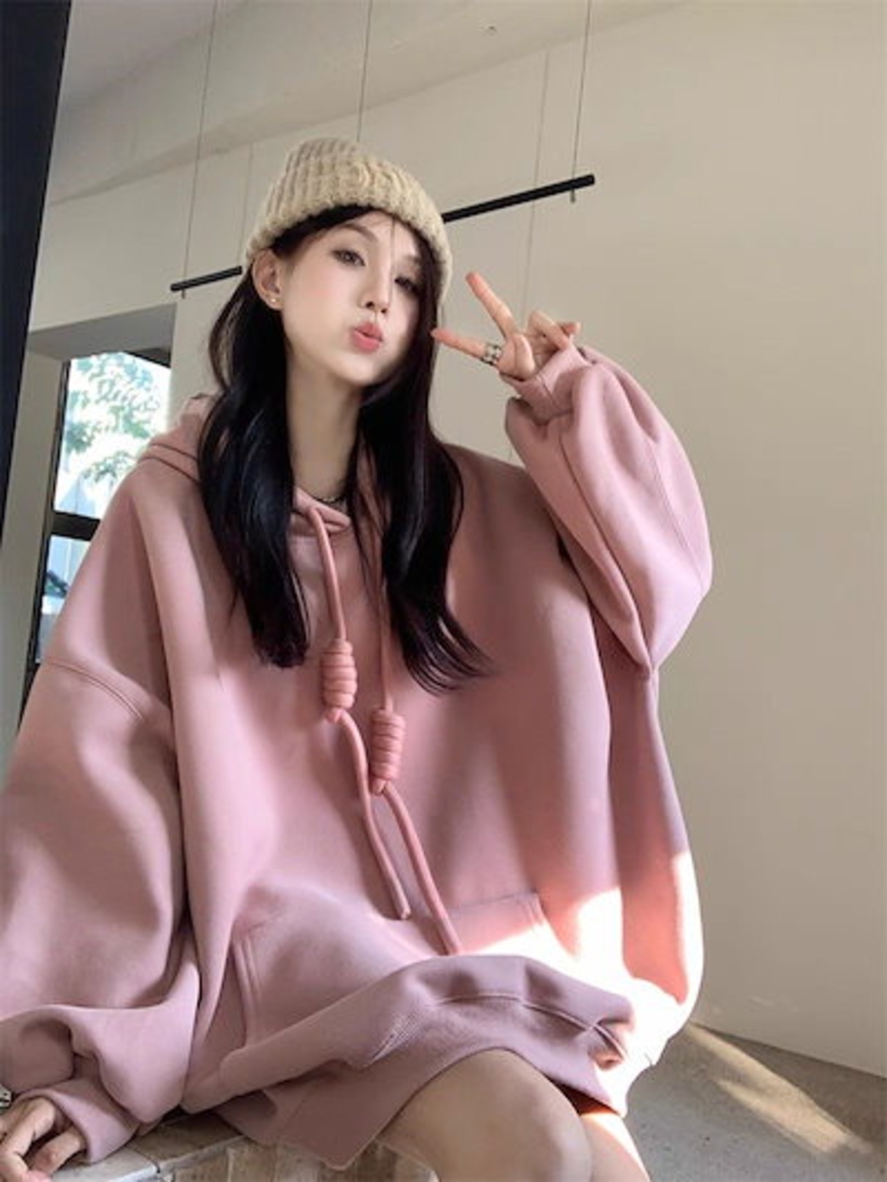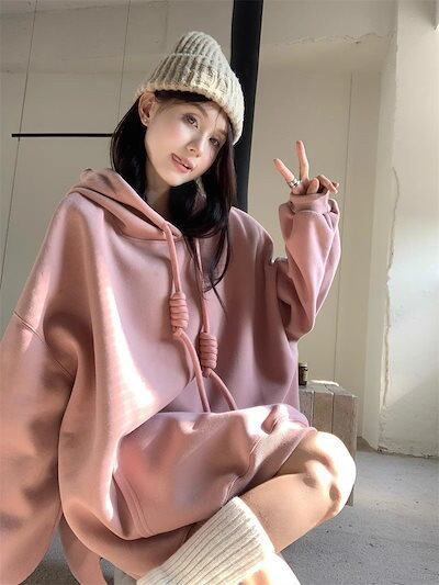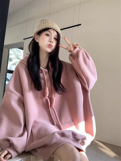 レディースパーカー ファッションカップル 長袖 アメリカン だるさ風オーバーサイズ ピンク スウェット トレーナー 韓国