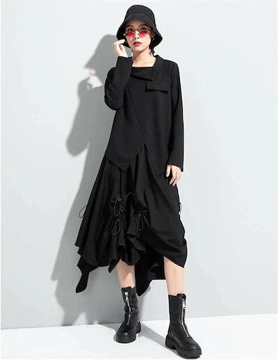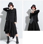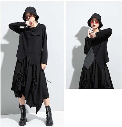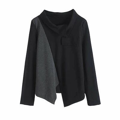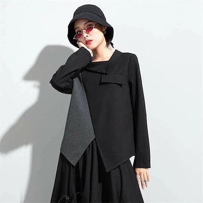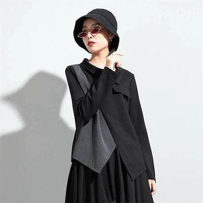 パーカー Tシャツ レディース 長袖 カットソー トップス 無地 モード系 変形 アシンメトリー アシメ 変形Tシャツ パーカー ヘムデザイン 個性的 クラシカル きれいめ おしゃれ オフィス