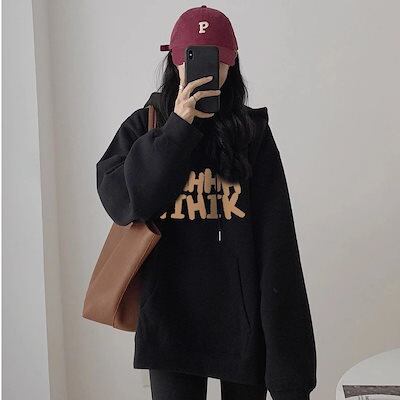 レディースパーカー ファッションカップル 長袖 裏起毛厚手 帽子付き にベルベット 小衆デザインの高級感大きいサイズのゆるいコート スウェット トレーナー 韓国